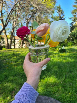 Le porte-alliances est fait en faïence blanche. Nous travaillons « à la plaque » avant de le faire cuire trois fois. D’abord pour cuire « le biscuit » à 1000°C pendant 24h puis nous l'émaillons et le faisons cuire une deuxième fois à 1000°C pendant 24h. Ensuite, nous le dorons à l’or fin pour une...