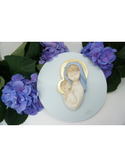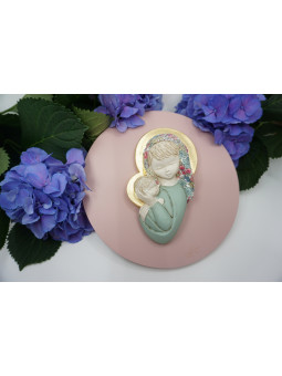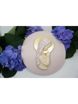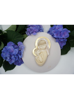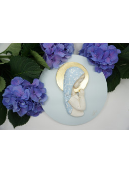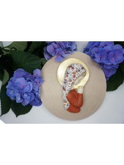 Nous avons collaboré avec un artisan espagnol qui crée dans son atelier près de Valence des « Virgencitas » que nous pouvons traduire par « Petites Vierge » ; elles décorent traditionnellement les chambres d’enfants. Nous avons travaillé avec des matériaux naturels tels que le plâtre et le bois. Nous avons sélectionné des tissus Liberty ou en lin à la recherche de la combinaison parfaite de matériaux, de couleurs et de textures pour obtenir un objet délicat et vintage, fait main et unique, capable de transmettre le dévouement, l'amour et la protection de la maternité.