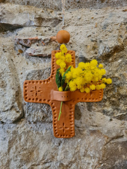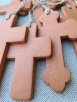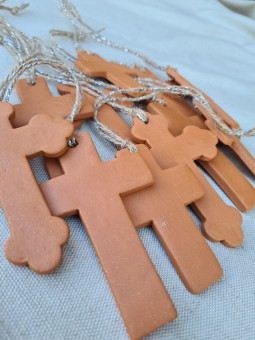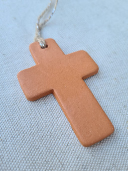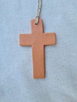 Prix 12,00 €Les croix sont faites en faïence rouge de Provence : terre de très belle qualité. Nous travaillons « à la plaque » avant de les faire cuire à 1000° pendant 24h.