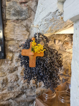 La magnifique terre rouge de Provence n'a besoin d'aucun fard ! Sa couleur unique est illuminée par des incrustations naturelles de roche. Les Bigotes ont confectionné des croix et colombes brutes qui révèlent la beauté de cette terre.