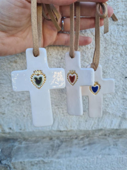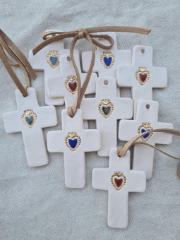 Prix 18,00 €Croix faites et peintes à la main en faïence blanche. 2 cuissons à haute température.