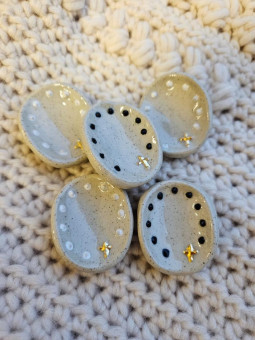 Prix 29,00 €La Rosary Stone est faite en grès pyrité français. C’est une terre de couleur beige. Les perles du dizainier sont également en grès et sont peintes aux engobes. La pièce est ensuite émaillée avec une couverte transparente et brillante et la croix est réhaussée d’or fin.