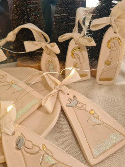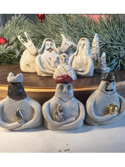 6 sujets de la crèche faits à la main en faïence blanche. 3 cuissons à haute température pour obtenir ces pièces uniques.