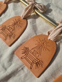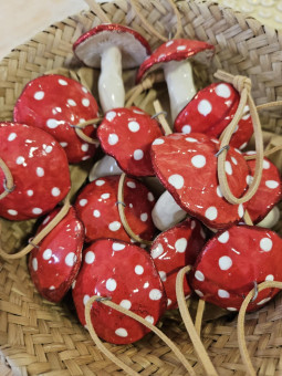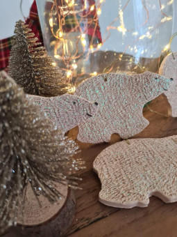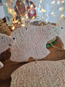 Prix 14,00 €Pièce modelée à la main en faïence blanche, émaillée et pailletée dans notre atelier bayonnais.