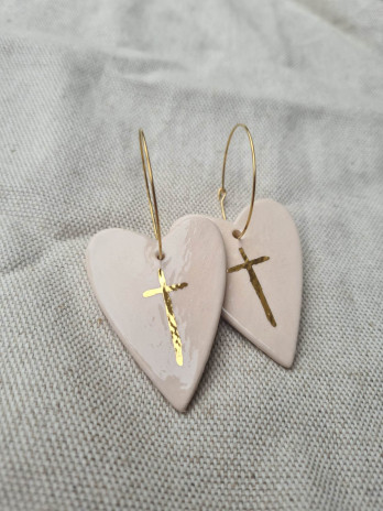 Les colombes sont faites en faïence blanche. Nous travaillons « à la plaque » avant de les faire cuire trois fois. D’abord pour cuire « le biscuit peint » à 1000°C pendant 24h puis nous les émaillons et les faisons cuire une deuxième fois à 1000°C pendant 24h. Ensuite, nous les dorons à l’or fin pour une dernière cuisson à 780°C pendant 24h.