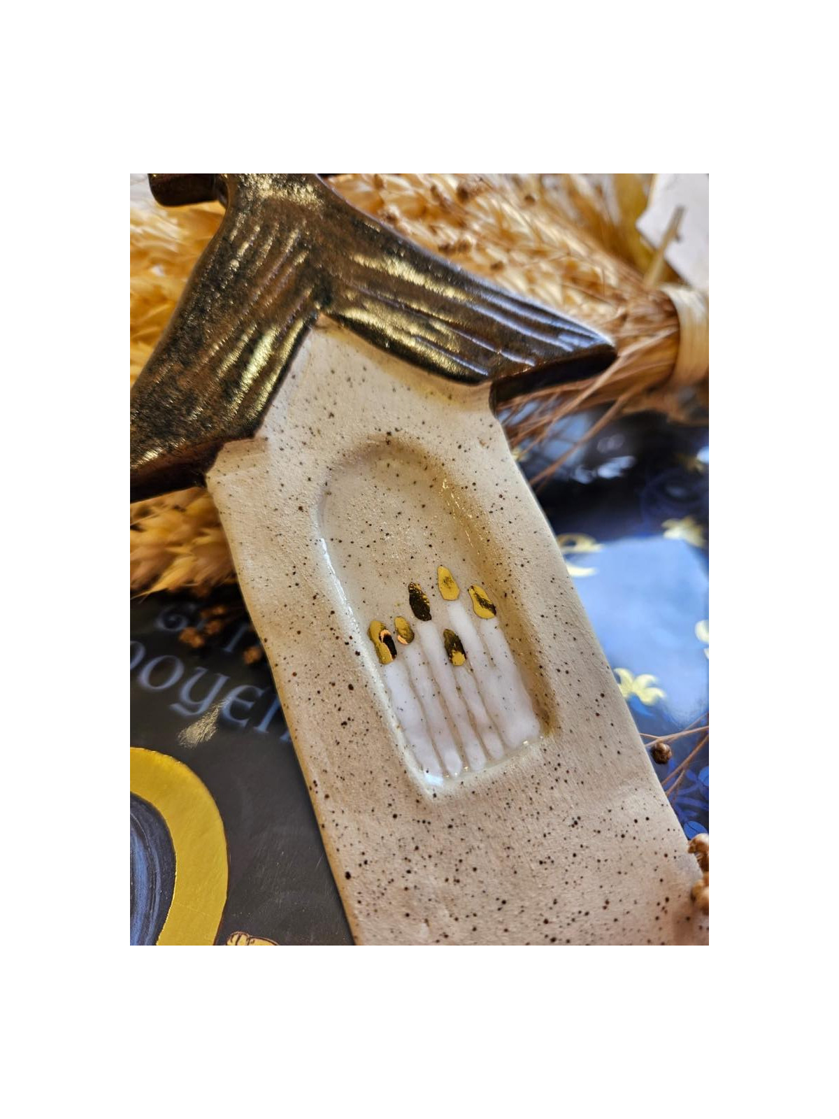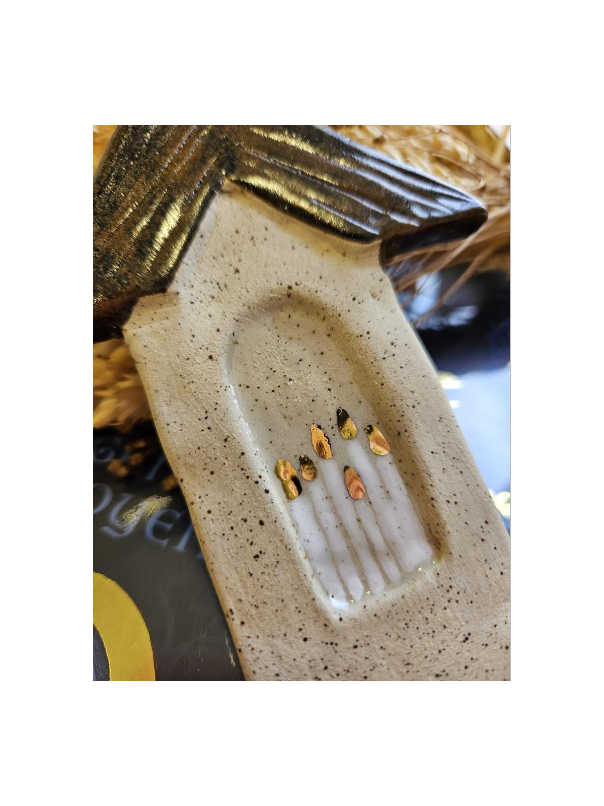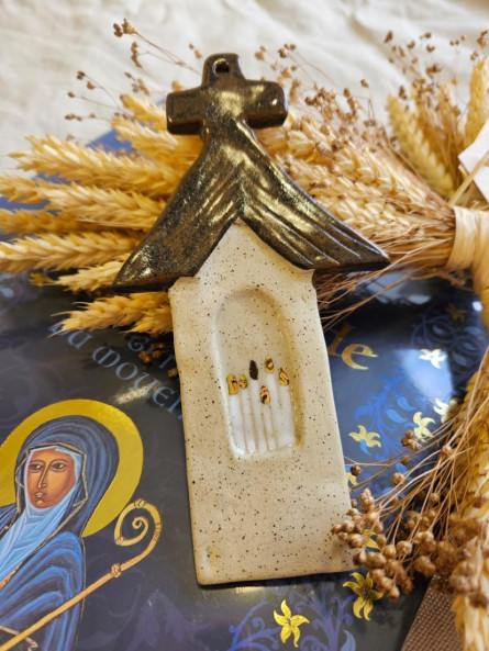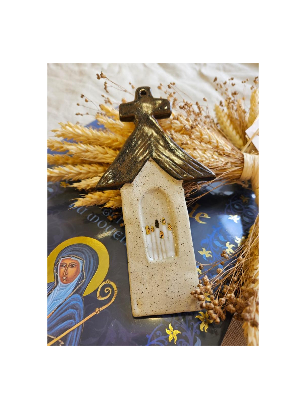 Chapelle modelée à la main en grès pyrité et dorée à l'or fin. 3 cuissons à haut température.