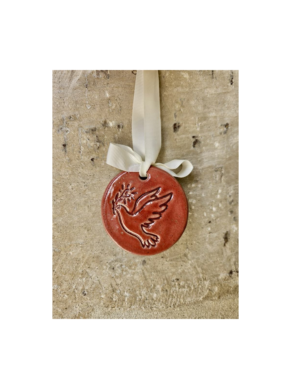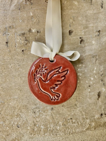 Les médailles de berceau sont faites en grès blanc pyrité. Nous travaillons « à la plaque » avant de les faire cuire deux fois. D’abord pour cuire « le biscuit » à 1000°C pendant 24h puis nous les émaillons et les faisons cuire ensuite à 1235°C pendant 24h. Nos médailles de berceau sont signées au dos.