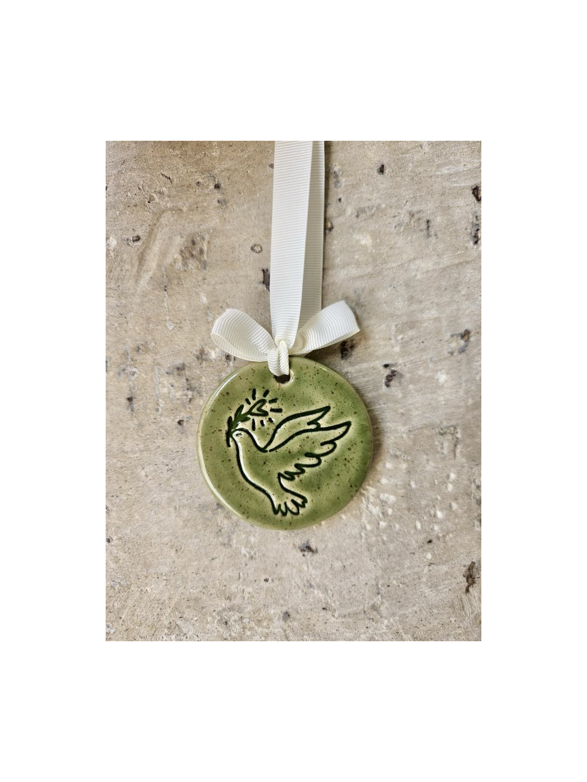 La médaille de berceau est un élément de décoration traditionnel destiné à orner la chambre d’un bébé, accroché à son berceau ou suspendu près de son couffin. Plus tard, elle pourra trouver sa place au-dessus de son lit. Ici, la Colombe représente l’Esprit Saint. Lors du Baptême, l’enfant reçoit un don qui le rend fort dans l’épreuve, le libère du doute et le rend joyeux et confiant. L’Esprit Saint est aussi l’expression de l’Amour de Dieu. Les Bigotes confectionnent et émaillent ces jolies médailles de berceau pour demander à Dieu de veiller sur la nuit de nos enfants. Chaque médaille est accompagnée de son ruban. Dimensions : 6,5 cm de diamètre.