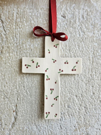Les médaillons sont faits en faïence blanche. Nous travaillons « à la plaque » avant de les faire cuire trois fois. D’abord pour cuire « le biscuit » à 1000°C pendant 24h puis nous les émaillons et les faisons cuire une deuxième fois à 1000°C pendant 24h. Ensuite, nous les dorons à l’or fin pour...